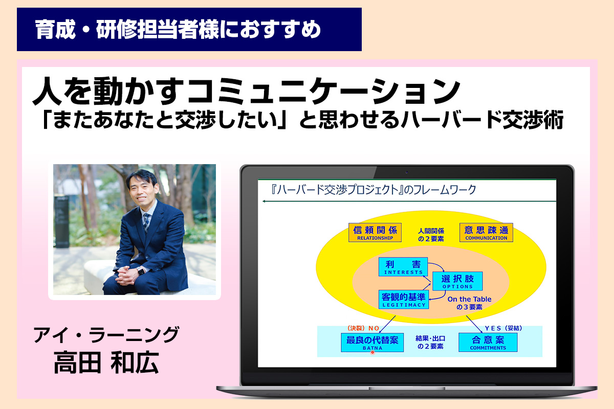 オンラインセミナー「人を動かすコミュニケーション - アサーティブ & ハーバード流交渉術 -」の後半セッションのアーカイブ動画です。動画・資料中の内容は開催当時の情報となりますためご了承ください。