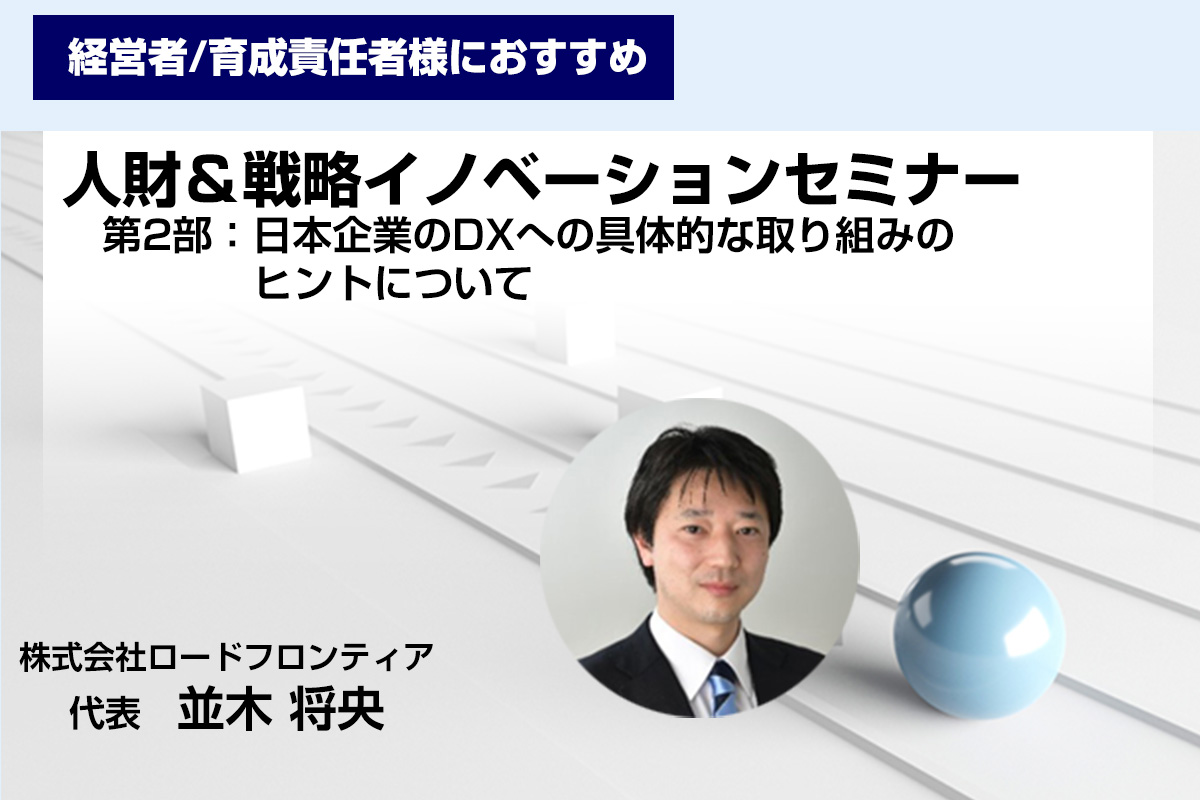 人財&戦略イノベーションセミナー第2部:「日本企業のDXへの具体的な取り組みのヒントについて」のアーカイブ動画です。動画・資料中の内容は開催当時の情報となりますためご了承ください。
