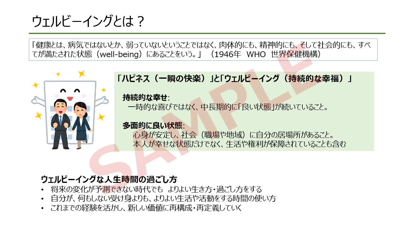 ・キャリア・健康・生活・人間関係など多面的なウェルビーイングの重要性を理解する