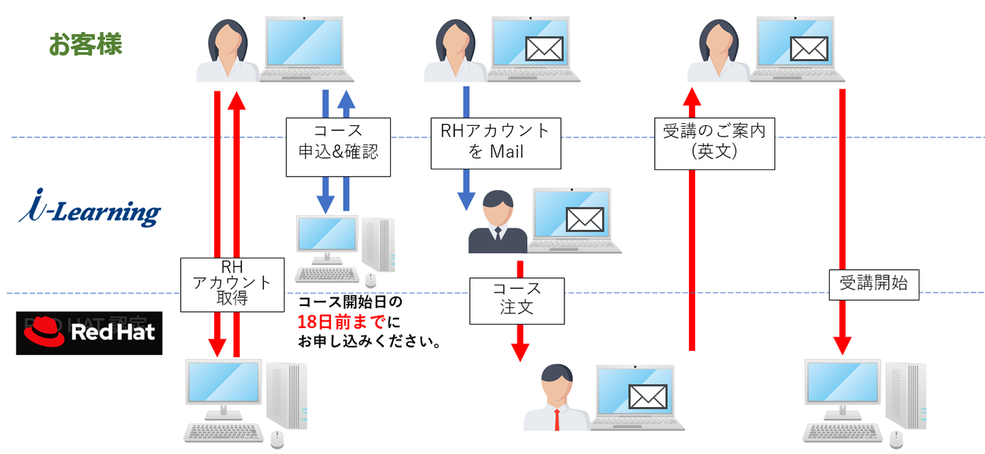 Red Hat コースのキャンセル規定にご注意ください。Red Hat コースのキャンセルは、クラス開始日の18日前から受講料金全額のキャンセル料が発生します。
