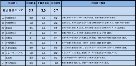 ・ビジネスシーンでどのようなコミュニケーションや判断を行うか、自分の能力の発揮度を客観的に見られるようになります。