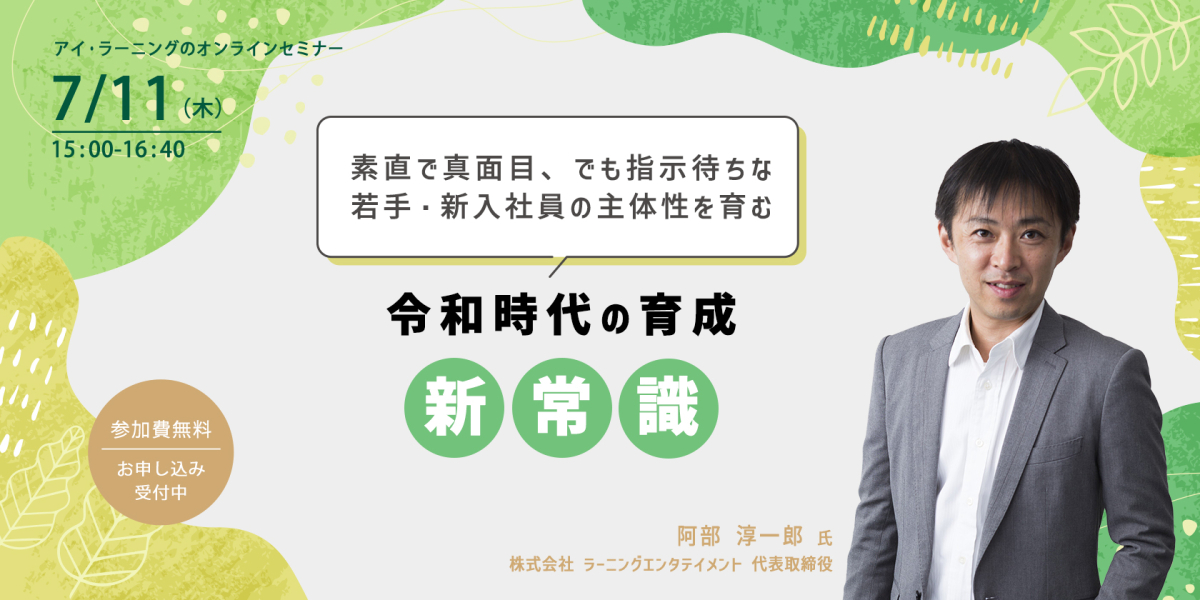 | セミナー | 令和時代の育成 新常識 ~素直で真面目、でも指示待ちな若手・新入社員の主体性を育む~ |