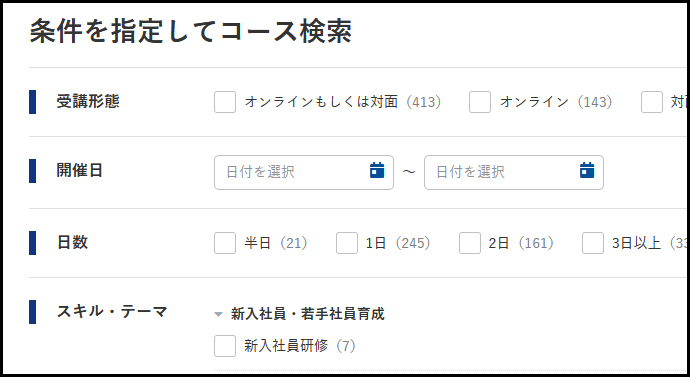 コースタイトルやキーワード、開催時期等を指定してご希望のコースを検索していただけます。